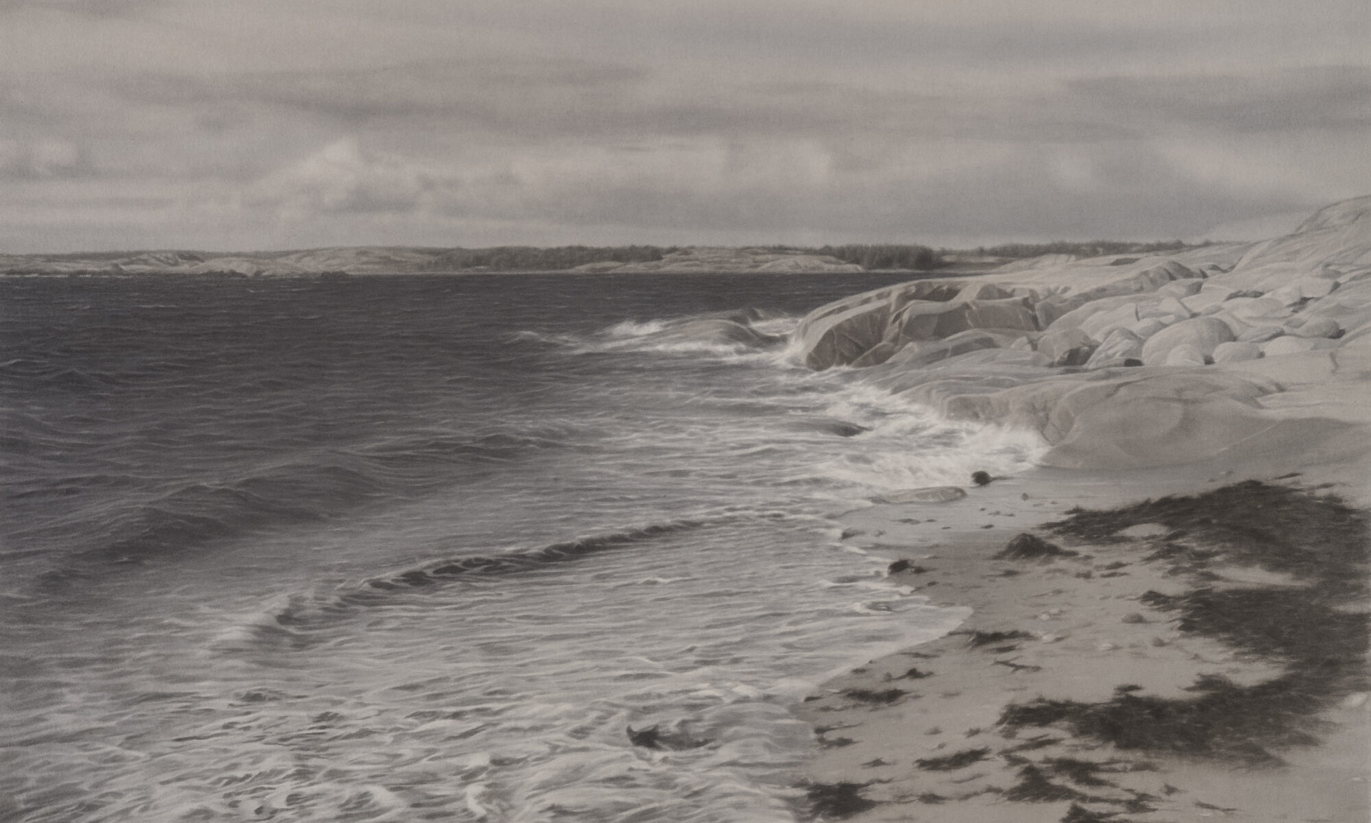 Sedan debuten, i början av 2000-talet, har konstnären Gunnel Wåhlstrand (född 1974) arbetat med den tidskrävande tekniken tuschlavering. Storskaligt och med en imponerande precision avbildar hon motiv från familjealbum och egna fotografiska förlagor av naturen på västkusten. Detaljskärpan, ljusförhållandena och speglingarna i de gråskaliga verken är fascinerande. I den kommande utställningen, som blir den mest omfattande presentationen med hennes verk sedan 2017, visas både tidiga och helt nyproducerade verk.