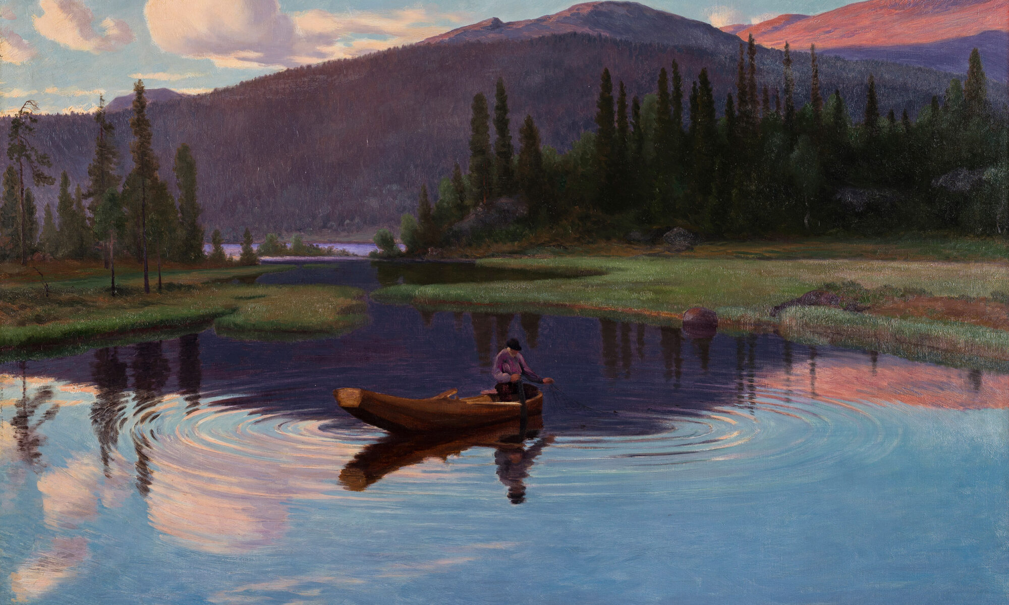 Pär Lagerkvist kända dikt, Det är vackrast när det skymmer från 1919 fångar ett centralt tema i den nordiska konsten vid förra sekelskiftet då skymnings- och gryningsmotiv var särskilt populära inom alla konstarter. Denna förkärlek för det speciella nordiska ljuset avspeglar sig också i Ernest och Signe Maria Thiels konstsamling som domineras av symbolistiska och nationalromantiska stämningslandskap, ofta från konstnärernas hembygder.